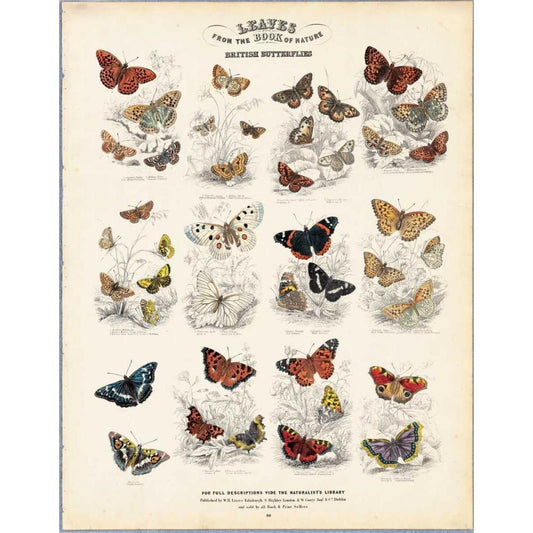 British Butterflies Black Modern Wood Framed Art Print with Double Matting by Lizars, WH