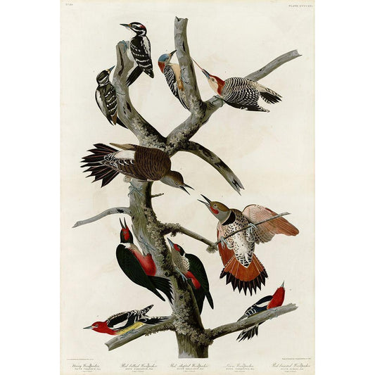 Woodpeckers Black Modern Wood Framed Art Print with Double Matting by Audubon, John James
