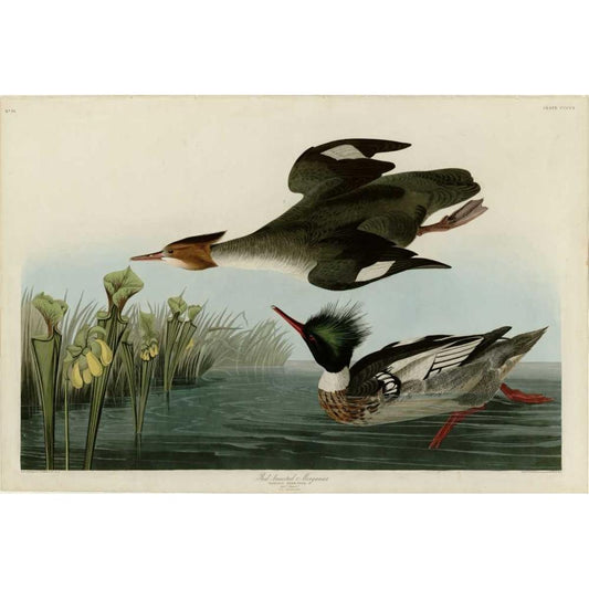 Red Breasted Merganser Black Modern Wood Framed Art Print with Double Matting by Audubon, John James