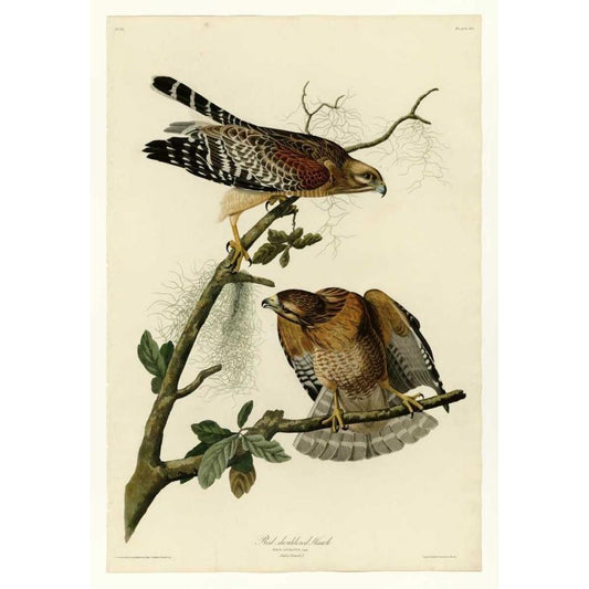 Red Shouldered Hawk Black Modern Wood Framed Art Print with Double Matting by Audubon, John James