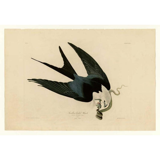 Swallow-Tailed Hawk Black Modern Wood Framed Art Print with Double Matting by Audubon, John James