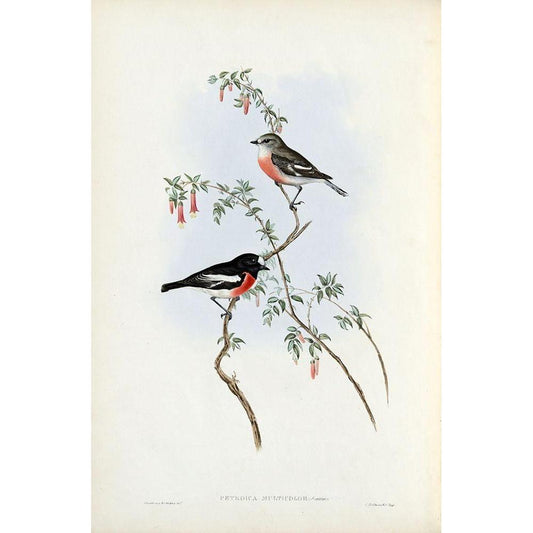 Scarlet Breasted Robin Black Modern Wood Framed Art Print with Double Matting by Gould, John