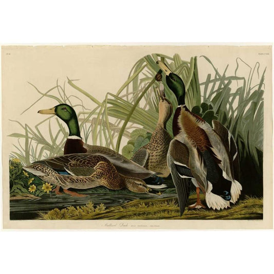 Mallard Duck Black Modern Wood Framed Art Print with Double Matting by Audubon, John James