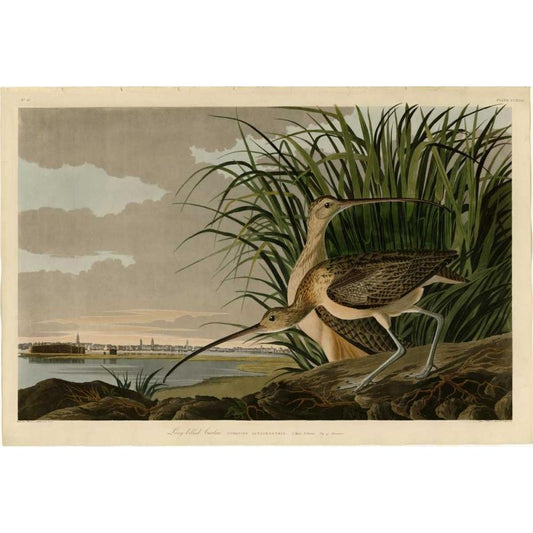 Long Billed Curlew Black Modern Wood Framed Art Print with Double Matting by Audubon, John James