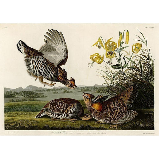 Pinnated Grouse Black Modern Wood Framed Art Print with Double Matting by Audubon, John James