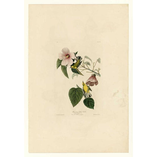 Blue Winged Yellow Warbler Black Modern Wood Framed Art Print with Double Matting by Audubon, John James