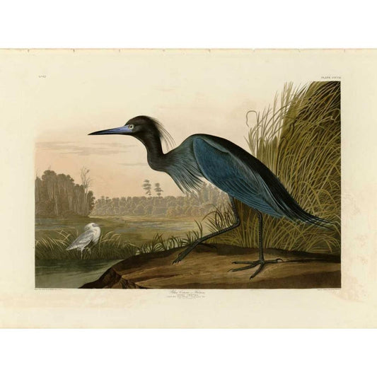 Blue Crane or Heron Black Modern Wood Framed Art Print with Double Matting by Audubon, John James