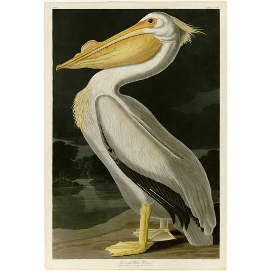 American White Pelican Black Modern Wood Framed Art Print with Double Matting by Audubon, John James
