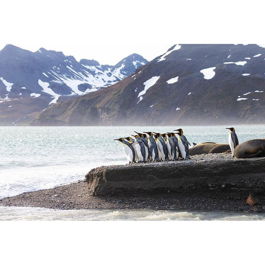 King penguins on the beach-Gold Harbour-South Georgia-Antarctica Black Modern Wood Framed Art Print with Double Matting by Su, Keren