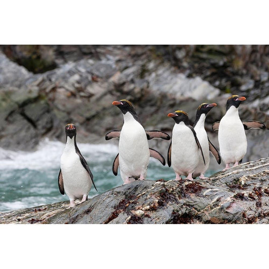Southern Ocean-South Georgia-Cooper Bay-macaroni penguin Black Modern Wood Framed Art Print with Double Matting by Goff, Ellen B.