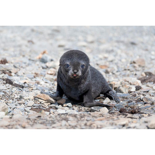 Southern Ocean-South Georgia-Antarctic fur seal-Portrait of a very young fur seal pup with blue eyes Black Modern Wood Framed Art Print with Double Matting by Goff, Ellen B.