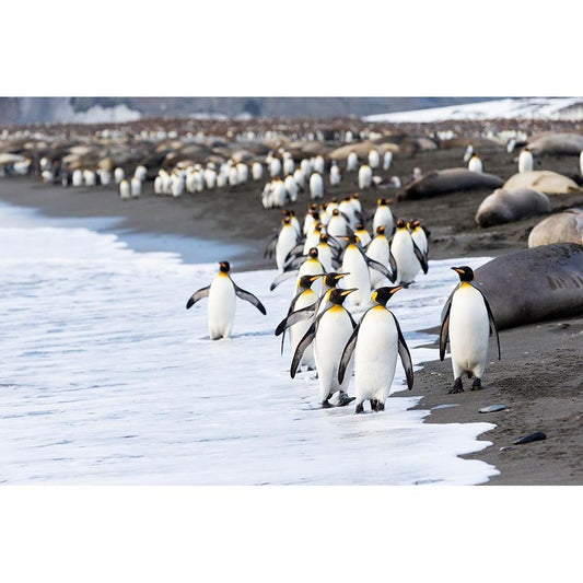 Southern Ocean-South Georgia-Salisbury Plain-Non breeding adults congregate on the icy plains Black Modern Wood Framed Art Print with Double Matting by Goff, Ellen B.