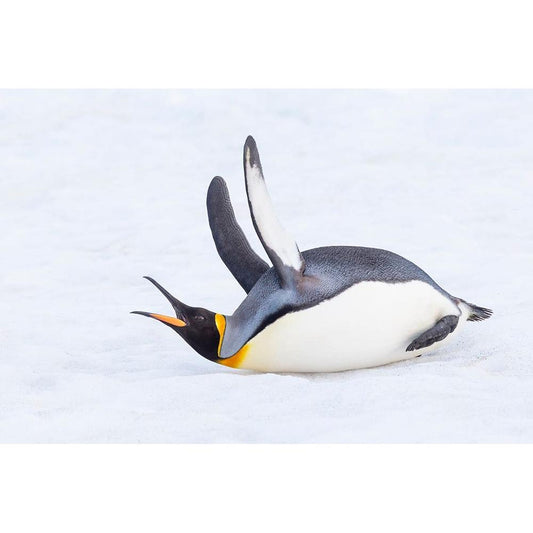 Southern Ocean-South Georgia-A king penguin flaps its flippers and vocalizes while lying down Black Modern Wood Framed Art Print with Double Matting by Goff, Ellen B.
