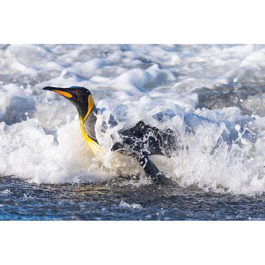 Southern Ocean-South Georgia-A king penguin surfs the waves to the shore Black Modern Wood Framed Art Print with Double Matting by Goff, Ellen B.