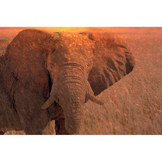 Africa-Namibia-Montage of elephant at sunrise Black Modern Wood Framed Art Print with Double Matting by Jaynes Gallery