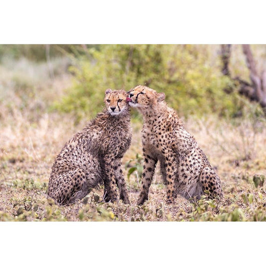Cheetah cubs bonding-while waiting the call for dinner-Serengeti-Tanzania-Africa Black Modern Wood Framed Art Print with Double Matting by Norring, Tom