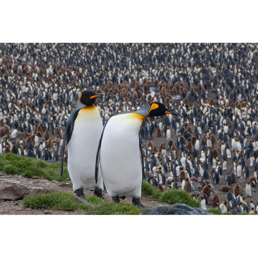Southern Ocean-South Georgia-St-Andrews Bay-Two adults stand together overlooking the crowded colony Black Modern Wood Framed Art Print with Double Matting by Goff, Ellen B.