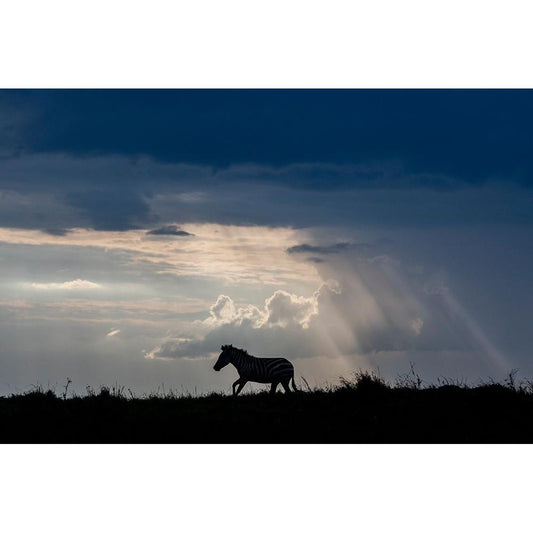 Africa-Kenya-Serengeti-Maasai Mara-Burchells zebra-Sihouette of zebra Black Modern Wood Framed Art Print with Double Matting by Hopkins, Cindy Miller