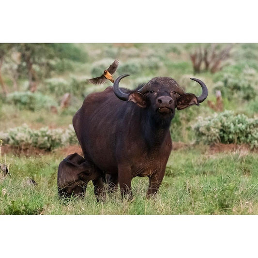 African buffalo-Syncerus caffer-and its calf-Tsavo-Kenya Black Modern Wood Framed Art Print with Double Matting by Pitamitz, Sergio