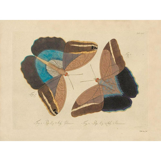Vintage Butterflies 2 Black Modern Wood Framed Art Print with Double Matting by Stellar Design Studio