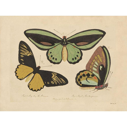Vintage Butterflies 3 Black Modern Wood Framed Art Print with Double Matting by Stellar Design Studio