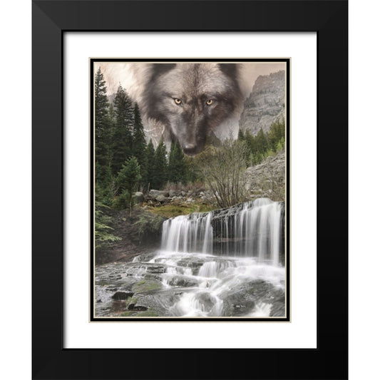 Wolf Waterfall Visit Black Modern Wood Framed Art Print with Double Matting by Deiter, Lori