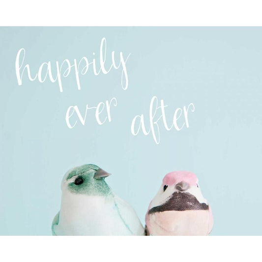 Happily Ever After Love Birds Black Modern Wood Framed Art Print with Double Matting by Susannah Tucker Photography
