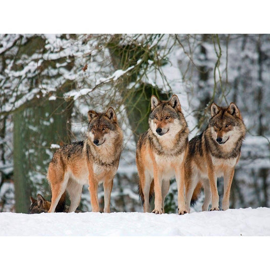 Wolves in the snow, Germany Black Modern Wood Framed Art Print with Double Matting by Anonymous