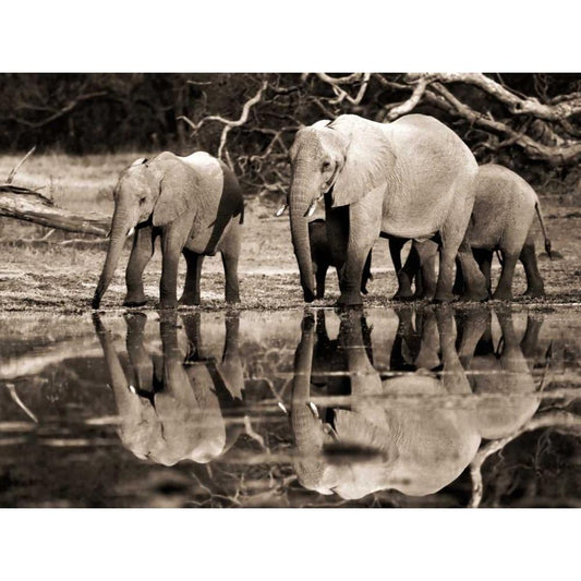 African elephants, Okavango, Botswana Black Modern Wood Framed Art Print with Double Matting by Krahmer, Frank