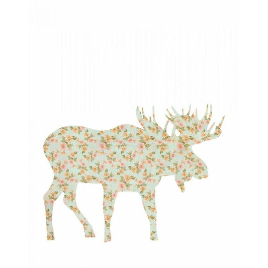 Floral Moose Black Modern Wood Framed Art Print with Double Matting by Moss, Tara