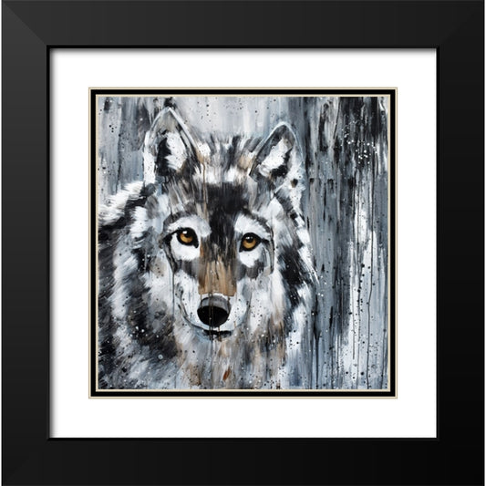 Golden Eye Wolf Black Modern Wood Framed Art Print with Double Matting by Seeley, Jenn