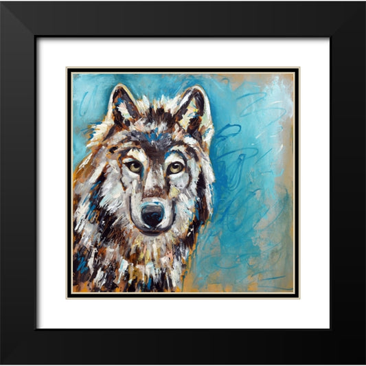 Brown Wolf Black Modern Wood Framed Art Print with Double Matting by Seeley, Jenn