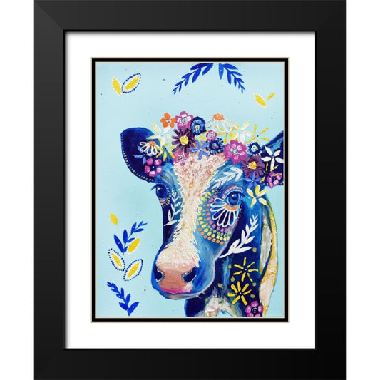 Daisy Cow Black Modern Wood Framed Art Print with Double Matting by Seeley, Jenn