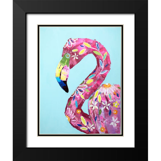 Daisy Flamingo Black Modern Wood Framed Art Print with Double Matting by Seeley, Jenn