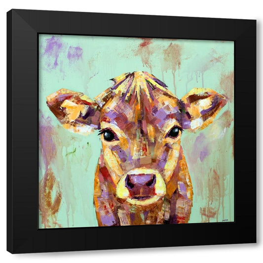 Celadon Cow Black Modern Wood Framed Art Print with Double Matting by Seeley, Jenn