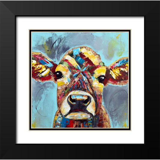 Carabelle the Cow Black Modern Wood Framed Art Print with Double Matting by Seeley, Jenn