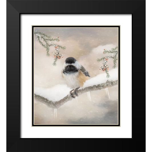 Chilly Chickadee Black Modern Wood Framed Art Print with Double Matting by Parker, Kelley