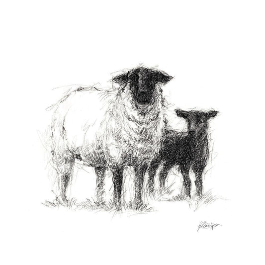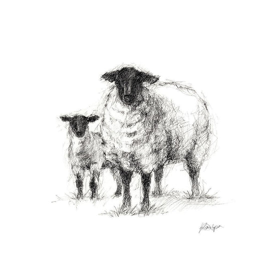 Charcoal Sheep Study I White Modern Wood Framed Art Print with Double Matting by Harper, Ethan