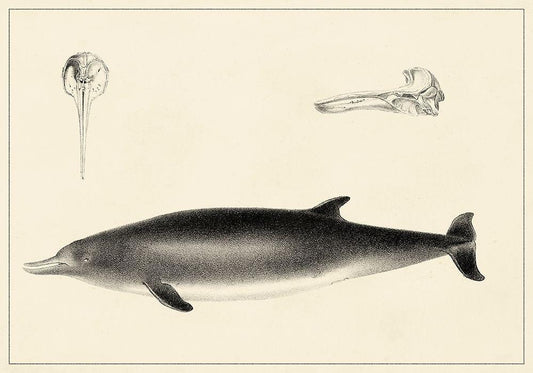 Antique Dolphin Study I White Modern Wood Framed Art Print with Double Matting by Unknown