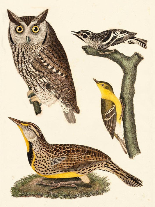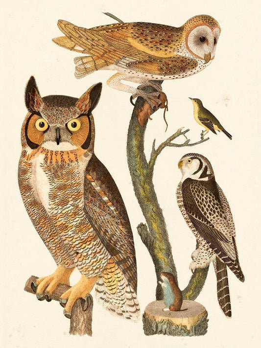 Wilson Owls I White Modern Wood Framed Art Print with Double Matting by Wilson, Alexander
