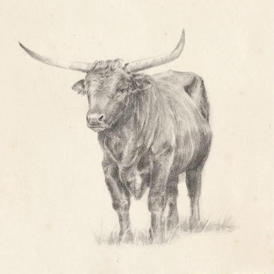 Longhorn Steer Sketch I White Modern Wood Framed Art Print with Double Matting by Harper, Ethan
