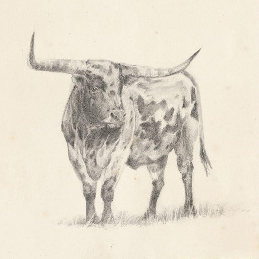 Longhorn Steer Sketch II White Modern Wood Framed Art Print with Double Matting by Harper, Ethan