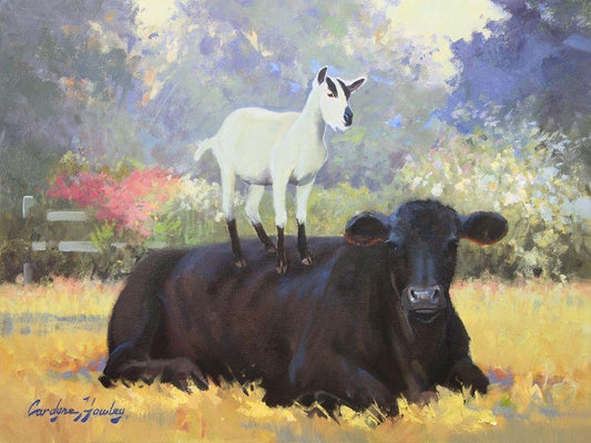 Farm Pals I White Modern Wood Framed Art Print with Double Matting by Hawley, Carolyne