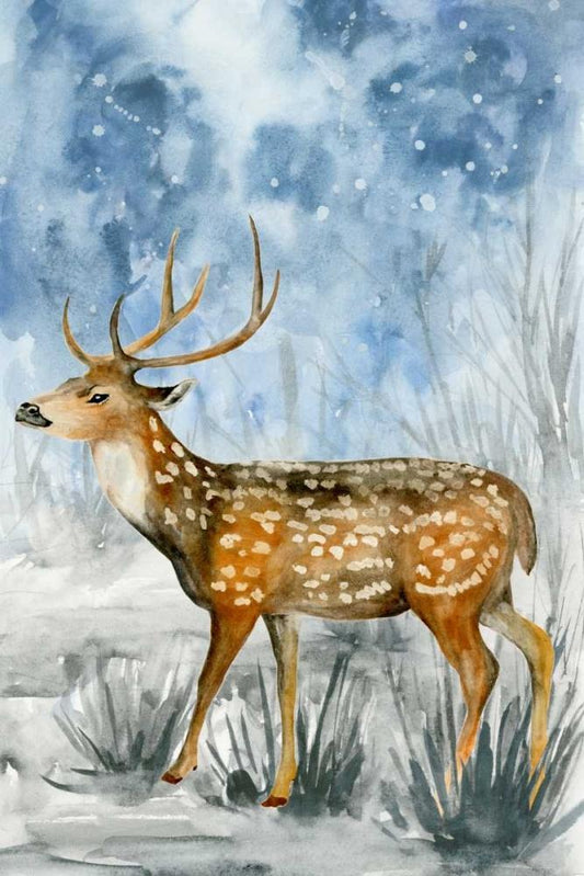 Snowy Night I White Modern Wood Framed Art Print with Double Matting by Wang, Melissa