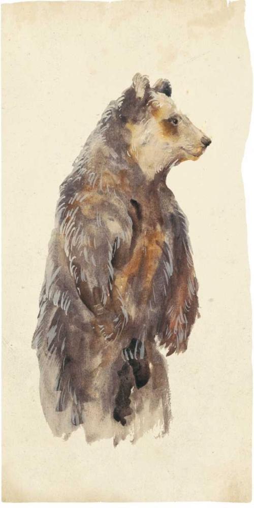 Brown Bear Stare I White Modern Wood Framed Art Print with Double Matting by Wang, Melissa