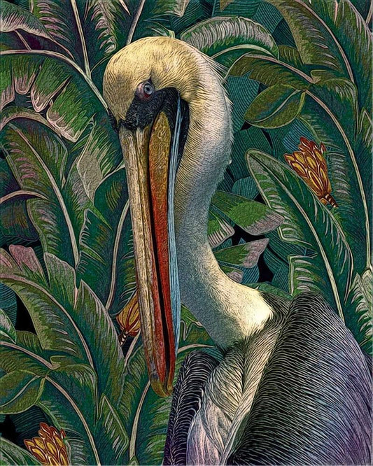 Primal Pelicana White Modern Wood Framed Art Print with Double Matting by Hunziker, Steve