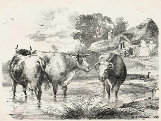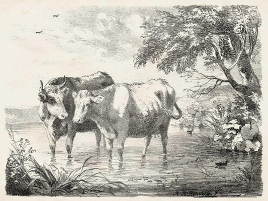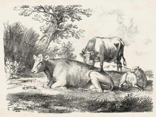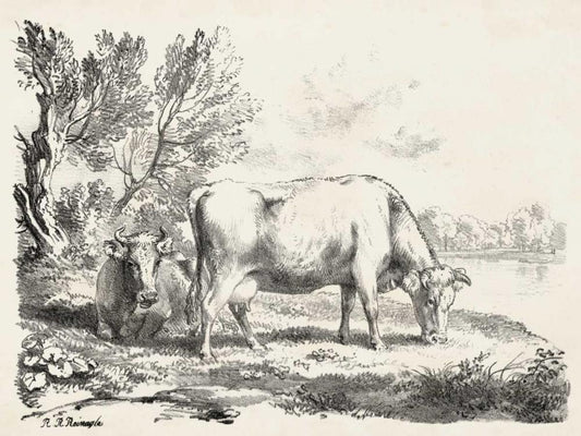 Cow Pals III White Modern Wood Framed Art Print with Double Matting by Young, Carol