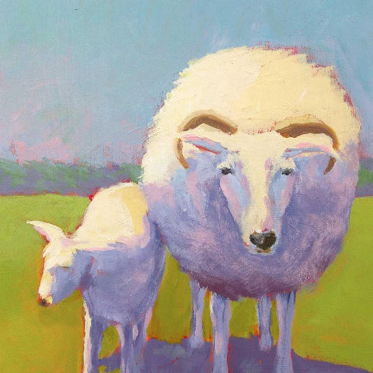 Sheep Pals I White Modern Wood Framed Art Print with Double Matting by Young, Carol
