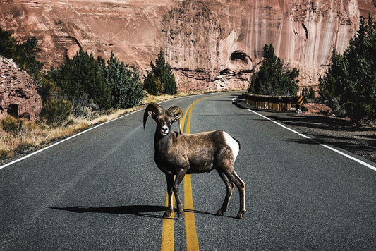 A Bighorn Sheep in Colorado National Monument-Mesa County-Colorado White Modern Wood Framed Art Print with Double Matting by Highsmith, Carol