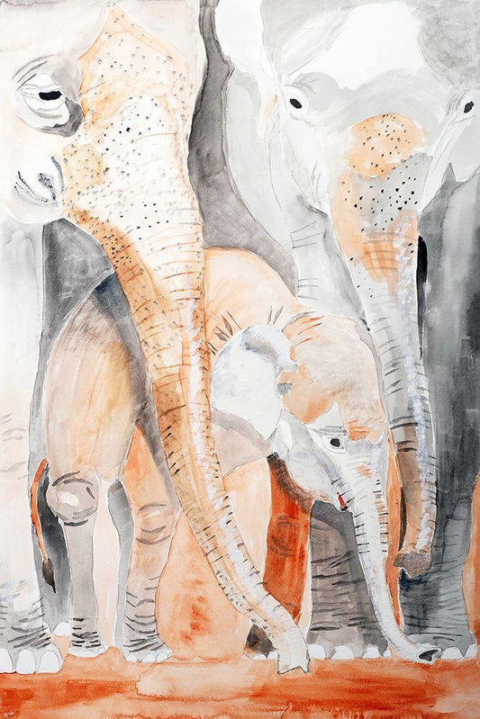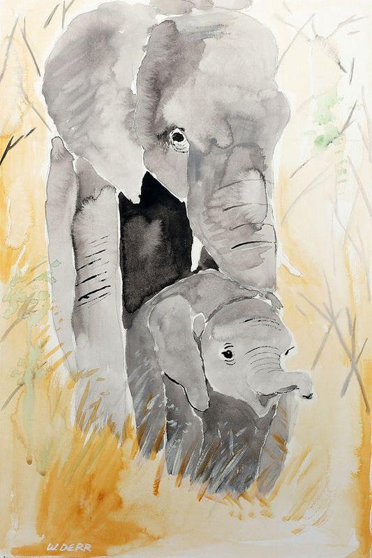 Elephant Pair White Modern Wood Framed Art Print with Double Matting by Derr, Wynn